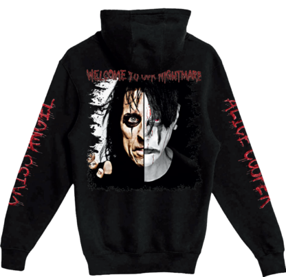 Full zip-up hoodie with AC/CA logo on front, Criss Angel on left sleeve, Alice Cooper on right sleeve, and Welcome to our Nightmare Keyart on the back. FABRIC: 8.0 oz. fleece, 80% ring-spun cotton/20% polyester, Reactive-dyed for longer-lasting color.